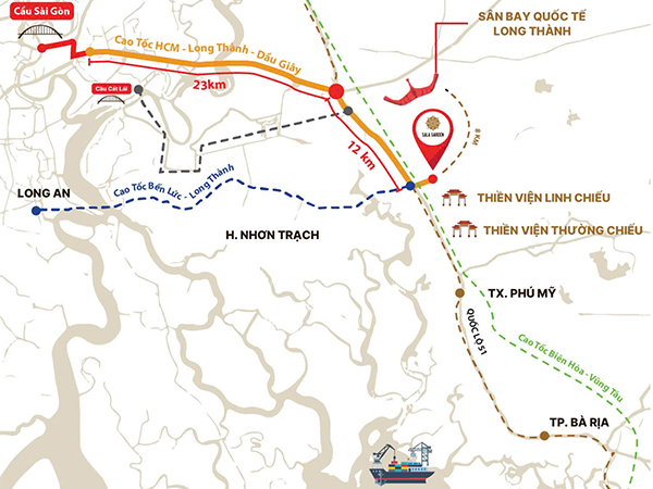 Các tuyến đường huyết mạch kết nối Long Thành – Đồng Nai chủ yếu xoay quanh Sân bay Long Thành tương lai, gồm : các cao tốc lớn (TP.HCM – Long Thành – Dầu Giây, Biên Hòa – Vũng Tàu, Bến Lức – Long Thành)